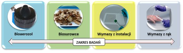 UWAGA!!! Do wykrywania obecności czynników biologicznych w środowisku pracy i określenia rozmiarów ekspozycji, największe znaczenie ma badanie bioaerozoli. Istotne może być również mikrobiologiczne badanie próbek biosurowców, a także wymazów z instalacji przemysłowej i rąk pracowników.
