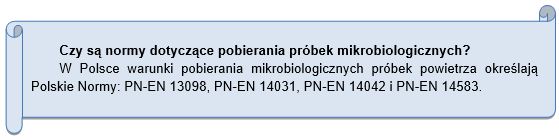 - Polska Norma PN-EN 13098 (2007): Powietrze na stanowiskach pracy - Wytyczne dotyczące pomiaru mikroorganizmów i endotoksyn zawieszonych w powietrzu. Polski Komitet Normalizacyjny, Warszawa.
