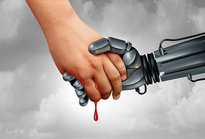 - nieoczekiwane, niebezpieczne reakcje robota na sytuację odbiegającą od wyuczonego modelu, nieoczekiwane ruchy;