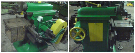 - pionowe (zwane dłutownicami) (Fot.3.) przeznaczone do obróbki rowków oraz otworów kształtowych w produkcji jednostkowej i małoseryjnej. Narzędzie wykonuje ruch roboczy pionowy postępowo-zwrotny, a stół wraz z przedmiotem obrabianym wykonuje posuw w kierunku prostopadłym do kierunku ruchu noża lub ruch obrotowy w przypadku zastosowania stołu obrotowego do obróbki otworów kształtowych.