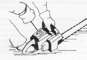 - odstawiając pilarkę na dłuższy czas wyłączyć silnik i włączyć hamulec przesuwając do przodu osłonę przednią; jeśli jest to pilarka elektryczna, należy wyjąc wtyczkę z gniazdka,