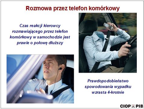 Najlepszym zobrazowaniem oddziaływania rozmowy telefonicznej na zachowanie człowieka jest obraz osoby, stojącej na ulicy, kręcącej się w kółko z utkwionym wzrokiem w chodnik i gestykulującej w nawiązaniu do rozmowy, jaką prowadzi przez telefon komórkowy. Przy dużym zaangażowaniu w rozmowę naturalne jest odcięcie wszystkich innych bodźców. Prowadząc taką rozmowę w sytuacji prowadzenia pojazdu mimowolnie odcinamy część bodźców potrzebnych do analizy sytuacji na drodze. Potwierdzeniem tego są relacje kierowców skierowanych na badania psychologiczne z powodu przekroczenia dopuszczalnej liczby punktów karnych (tzw. „punktowców”), którzy za powód uzyskania punktów karnych podawali fakt, że nie zauważyli patrolu policji lub fotoradaru, z powodu angażującej rozmowy przez telefon. Jeśli nie zauważyli tak „ważnych” elementów sytuacji drogowej jak patrol policji lub fotoradar, to z pewnością przeoczyliby również pijanego pieszego idącego skrajem drogi, słabo oznakowane dziecko wracającego po zmroku do domu. (Slajd 7)