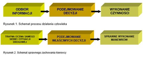 Ogólny schemat działania człowieka. oraz schemat sprawnego działania kierowcy pokazują, że sprawne zachowanie składa się z trzech podstawowych etapów: