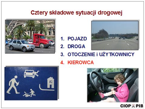 Analizując sytuację drogową można ją podzielić na cztery podstawowe „obszary” składowe wpływające na bezpieczeństwo: samochód, droga, otoczenie i zachowanie innych użytkowników drogi oraz sam kierowca. Wszystkie te elementy i interakcja pomiędzy nimi warunkuje bezpieczeństwo na drodze. Jednak z punktu widzenia kierowcy najważniejsze są: samochód i kierowca, ponieważ na sprawność tych składowych mamy największy wpływ. Z punktu widzenia bezpieczeństwa najważniejszym elementem jest sam kierowca, ponieważ w zdecydowanej większości przyczyną wypadków drogowych są błędy i naruszenia kierowców. Najsłabszym elementem oceny sytuacji na drodze jesteśmy my sami, na co wskazują statystyki przyczyn wypadków. Mówiąc ogólnie błąd ludzki jest najczęstszą przyczyną wypadków (nie tylko na drogach).