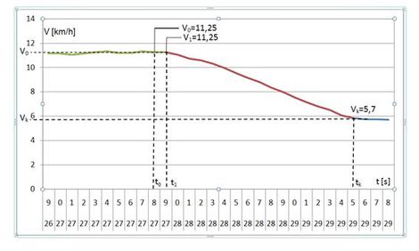 Na rysunku 3.6 przedstawiono wykres zarejestrowanych prędkości podczas jednego z trzech przejazdów po łuku o promieniu około 3 m z prędkością początkową wynoszącą 11,25 km/h.