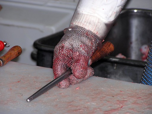Przy ręcznym posługiwaniu się ostrymi narzędziami powinny być stosowane środki ochrony indywidualnej dłoni, przedramienia, tułowia i części udowej.