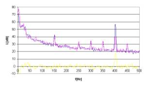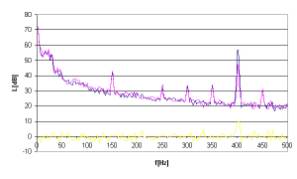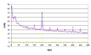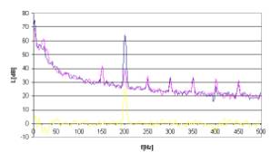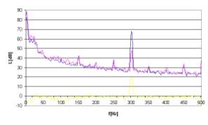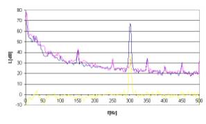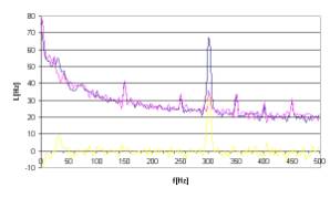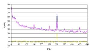 Rys. 17. Charakterystyki częstotliwościowe dla sygnału hałasu w postaci tonu o częstotliwości 300Hz.