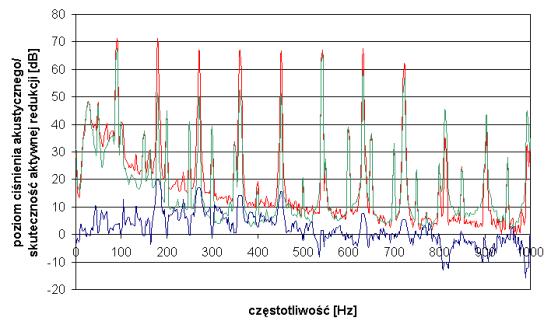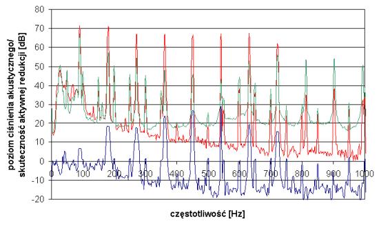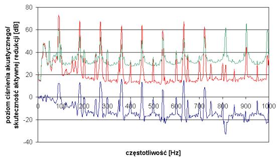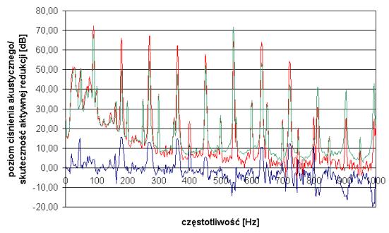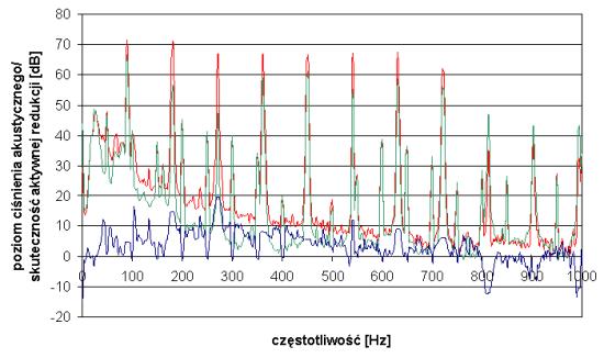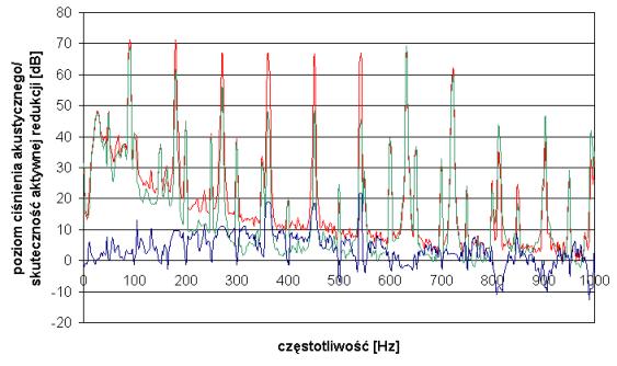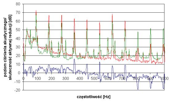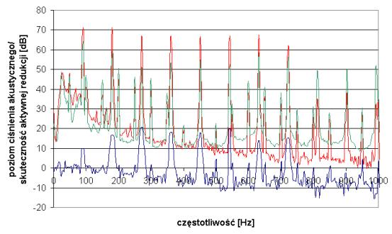 · kolor zielony – sygnał akustyczny mierzony po włączeniu układu aktywnej redukcji,