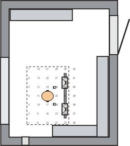 W trakcie pierwszej serii pomiarowej badano działanie układu zagłówka aktywnego dla trzech różnych położeń głośników zagłówka aktywnego, pokazanych na Rys 40 .