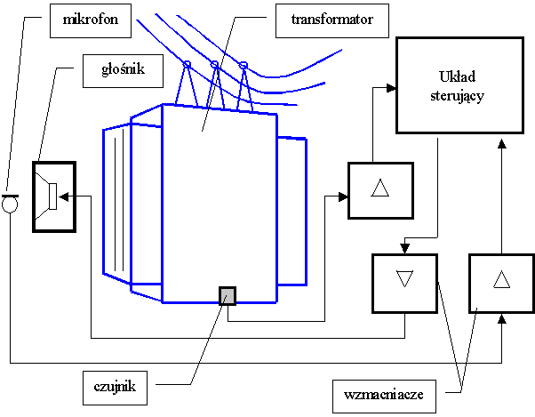 Rys.2. Schemat układu aktywnej redukcji hałasu transformatora
