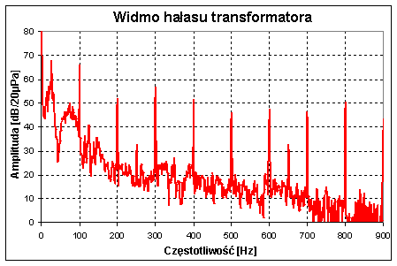 Rys. 1. Przykładowe widmo hałasu transformatora energetycznego.