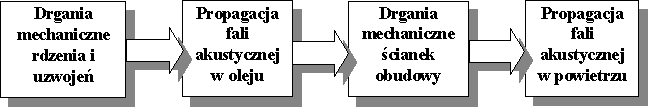 Rys. 2 Schemat przepływu energii wibroakustycznej w transformatorze.