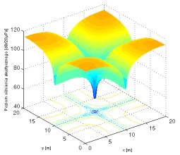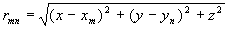 (xm,yn) – położenie źródła (m,n) na płaszczyźnie OXY (z=0).