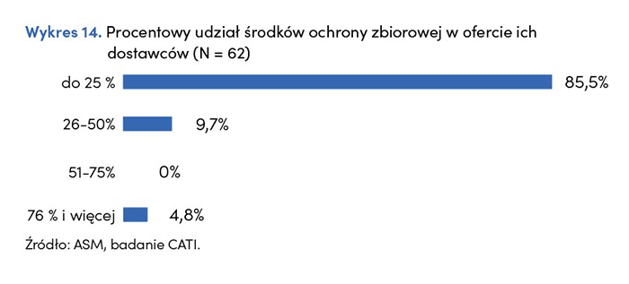 Tabela 6. Udział poszczególnych produktów w ofercie środków ochrony zbiorowej (N = 62)