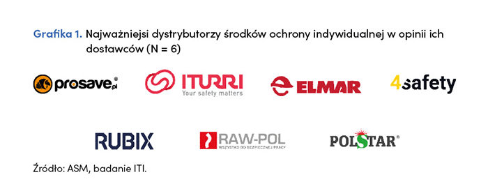 Podczas wywiadów pogłębionych ITI zapytano dostawców ŚOI o najważniejszych graczy na rynku, które przedstawiają grafiki poniżej. Są to producenci i dystrybutorzy, którzy w opinii dostawców ŚOI są najbardziej liczącymi się przedsiębiorstwami w branży.