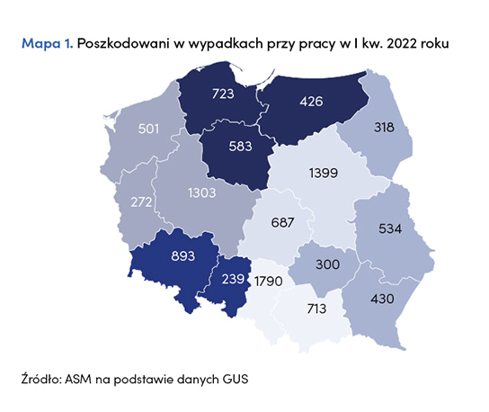 - przetwórstwo przemysłowe – 3 468 poszkodowanych,