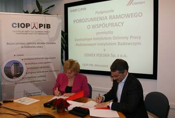 W dniu 27 lutego 2015 r. w siedzibie CIOP-PIB w Warszawie zostało podpisane porozumienie ramowe o współpracy pomiędzy Centralnym Instytutem Ochrony Pracy-Państwowym Instytutem Badawczym a Cemex Polska Sp. z o.o.