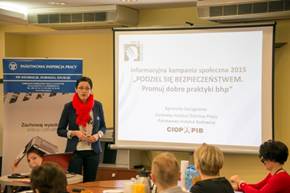 Następnie, podczas seminarium, przedstawiciele Instytutu omówili: działalność CIOP-PIB na rzecz poprawy bezpieczeństwa pracy w przedsiębiorstwach, innowacyjne techniki szkoleniowe wykorzystujące zaawansowane technologie informatyczne, elementy prewencji zagrożeń związanych z transportem drogowym oraz doświadczenia CIOP-PIB z zakresu wdrażania w przedsiębiorstwach programów modyfikacji zachowań niebezpiecznych.