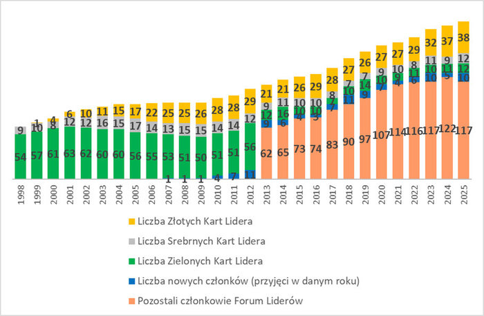 W tym roku grono Liderów Bezpiecznej Pracy powiększyło się o kolejnych 10 przedsiębiorstw. Obecnie do grona Forum Liderów należy 189 przedsiębiorstw i instytucji, w tym 62 są wyróżnione Zielonymi, Srebrnymi i Złotymi Kartami Liderów.