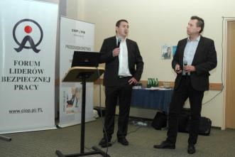 Uczestnicy konferencji wysłuchali prezentacji dotyczących zastosowanych w tych firmach rozwiązań technicznych i organizacyjnych wpływających na poprawę bezpieczeństwa i warunków pracy. W grupie nowych członków FL znajduje się m.in. laureat zeszłorocznej edycji konkursu dobrych praktyk bhp zorganizowanego w ramach kampanii europejskiej „Partnerstwo dla prewencji” – firma CEMEX Polska Sp. z o.o. z Warszawy. Dyrektor ds. bhp tej firmy przedstawił m.in. projekt „Legacy” – szkolenie z zakresu wzmacniania cech przywódczych oraz zmiany zachowań w pracy. Projekt szkolenia opracowano jako nieodzowny element wzmacniania świadomości i kultury bhp. Objęto nim zarówno wszystkie szczeble kierownictwa, jak i zarządzania ludźmi. Głównym celem było zwrócenie uwagi na odpowiedzialność spoczywającą na osobach kierujących pracownikami, ich rolę w zakresie kształtowania bezpiecznych zachowań w pracy oraz przywództwa w tym zakresie. Istotnym elementem szkolenia była poprawa komunikacji pomiędzy przełożonym a pracownikiem. Przedstawiciel CEMEX omówił także kampanię pn. „12 Zasad Bezpiecznej Pracy”.