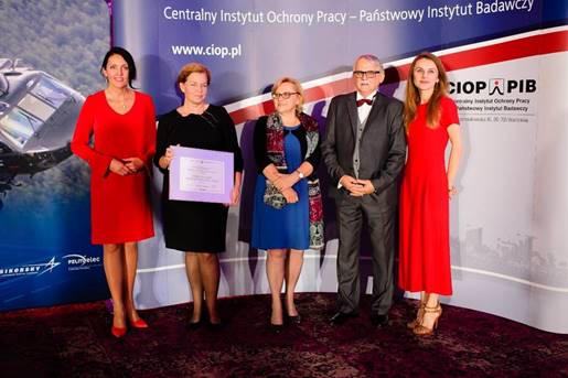Na zdjęciu od lewej: Agnieszka Szczygielska (Ośrodek Promocji i Wdrażania) - CIOP-PIB, Marian Deska - Akala Faraone Sp. z o.o., Artur Usiński (Pełnomocnik Zarządu ds. Zintegrowanego Systemu Zarządzania) - Bilfinger Industrial Services Polska Sp. z o.o., Jacek Szostak (Dyrektor ds. Projektów) - Elbudbis Sp z o.o., Barbara Wasiak (Dyrektor Zakładu Analitycznego) - Orlen Laboratorium S.A., Julita Capała (Z-ca Dyrektora Departamentu QHSE) i Wiesław Biernacki (Kierownik Działu BHP i Ochrony Ppoż.) - Polskie Górnictwo Naftowe i Gazownictwo S.A., Marta Górak – Kopeć (Dyrektor Personalny, członek Zarządu) - PZL Mielec Sp. z o.o., Michał Frąckiewicz (Dyrektor ds. BHP i OŚ) - Rolls-Royce Poland Sp. z o.o., Michał Treska (Koordynator Działu BHP i P.poż.) - Saur Neptun Gdańsk S.A., Paweł Nogalski (Wiceprezes Zarządu) - Trakcja PRKiI S.A., Joanna Bugajska (Kierownik Zakładu Ergonomii) - CIOP-PIB, Wiktor Marek Zawieska (Z-ca Dyrektora ds. Techniki i Wdrożeń) - CIOP-PIB, Aneta Kleczkowska (Ośrodek Promocji i Wdrażania) - CIOP-PIB
