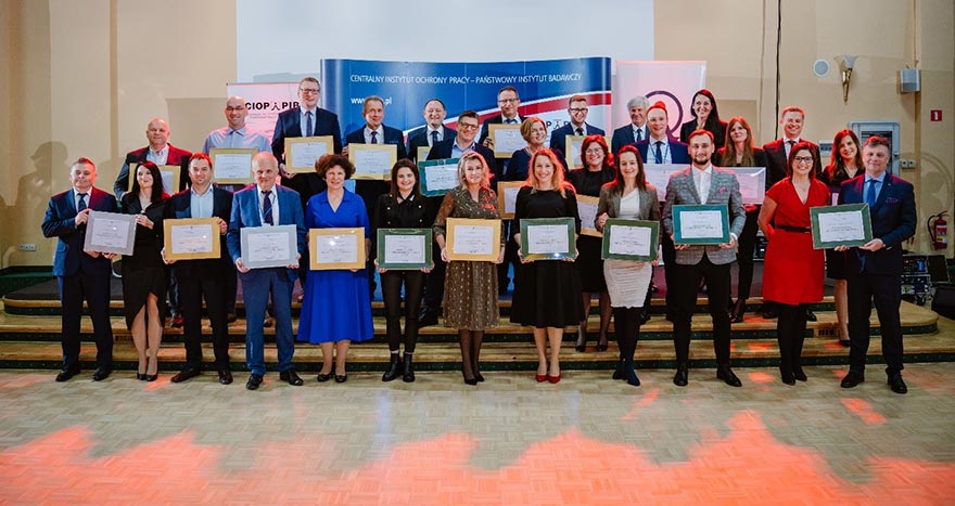 Fot. Laureaci nominacji oraz Kart Liderów Bezpiecznej Pracy, a także przedstawiciele Dyrekcji CIOP-PIB (fot. Tomasz Hodun)