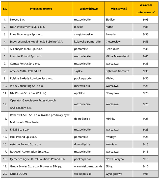 Wszystkim przedsiębiorstwom, które wzięły udział w zestawieniu serdecznie gratulujemy i mamy nadzieję, że będzie to dla nich impuls do podejmowania dalszych działań na rzecz kształtowania bezpiecznych warunków pracy.