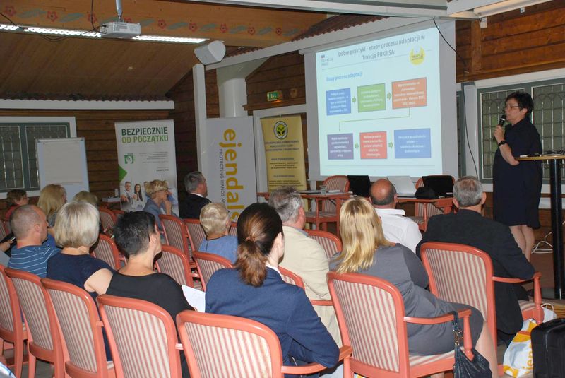 „Dobre praktyki” ze strony polskiej prezentowali Maria Żmidzińska, dyrektor ds. bhp w firmie Trakcja PRKiL SA oraz Andrzej Podgórski, specjalista w Inspektoracie Służby Więziennej i Aresztu Śledczego w Szczecinie. Trakcja PRKiL SA, to największa spółka działająca w sektorze budownictwa infrastrukturalnego oraz energetyki w Polsce. Oprócz wymaganych prawem polskim obowiązku związanego z zatrudnieniem, w firmie stosuje się opracowany „Dekalog zasad”, który wspiera obowiązki w zakresie bezpieczeństwa pracy. Każdy nowo zatrudniony pracownik ma przydzielonego opiekuna a każdy nowo zaczęty kontrakt ma wyznaczonego koordynatora bhp. W Trakcji PRKiL opracowuje się ścieżkę osobistego rozwoju pracownika. Poprzez intranet, który jest dostępny we wszystkich punktach, pracownicy otrzymują na bieżąco informacje z zakresu bhp, instrukcji, formularzy a także mogą zadawać pytania i wymieniać się doświadczeniem. Inspektora Służby Więziennej i Aresztu Śledczego, to specyficzny rodzaj zakładu pracy, w którym występują zagrożenia skutkujące utratą zdrowia i życia. Andrzej Podgórski, specjalista ds. bhp, zaprezentował obowiązujące procedury i szkolenia przy zatrudnianiu młodych, niedoświadczonych pracowników. Procedury i szkolenia obowiązują przez cały rok, po którym dopuszcza się do pracy nowego pracownika. Podobnie jak w Trakcji PRKiL, nowy pracownik ma przydzielonego mentora, który pomaga wdrożyć się do pracy.