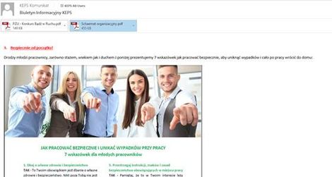 Dodatkowo przeprowadzono szeroką akcję komunikacyjną wśród pracowników posiadających dostęp do poczty elektronicznej za pomocą „KEPS komunikatu”.