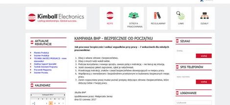 Zdjęcie nr 3. Fragment strony Intranetowej Kimball Electronics Poland Sp. z o.o.