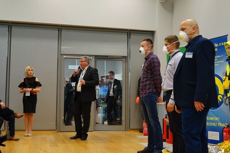 I Podkarpackie Forum Bezpieczeństwa miało również odsłonę praktyczną. Panel pokazowy rozpoczął p. Krzysztof Malkowicz przedstawiciel firmy UTC CCS Manufacturing Polska sp. z o.o., który omówił potrzebę dobrego wyszkolenia pracowników w zakresie ochrony przeciwpożarowej i zwalczania pożarów oraz zasady odpowiedniego doboru sprzętu ochrony przeciwpożarowej do warunków i zagrożeń pożarowych. Następnie głos zabrali przedstawiciele Wojewódzkiej Stacji Pogotowia Ratunkowego w Rzeszowie, którzy zainscenizowali kilka zdarzeń wypadkowych i omówili zasady postępowania. Tym samym zaangażowali do ćwiczeń praktycznych uczestników Forum, którzy mogli się przekonać jak ważna jest szybka reakcja w razie wystąpienia wypadku. Na zakończenie I Podkarpackiego Forum Bezpieczeństwa, w którym uczestniczyło ponad 150 osób odbył się pokaz środków ochrony indywidualnej i odzieży roboczej chroniącej przed czynnikami chemicznymi.
