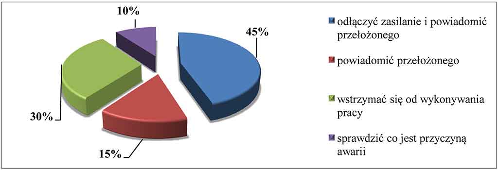 Wykres 10. Odpowiedzi na pytanie kwestionariuszowe: „Proszę podać, jak powinna Pani /powinien Pan zachować się w razie wystąpienia awarii na swoim stanowisku pracy?"
