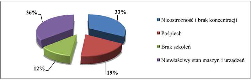 Aż 36% pracowników, którzy wzięli udział w ankiecie uważa, że najczęstszą przyczyną wypadków jest niewłaściwy stan maszyn i urządzeń, dlatego poza konserwacjami i remontami maszyn produkcyjnych, których dokonują mechanicy, zaleca się wprowadzenie dodatkowych kontroli stanu maszyn. Częstotliwość kontroli powinna zależeć od ogólnego stanu maszyny, jednak nie rzadziej niż raz w miesiącu.