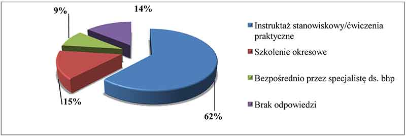 Niezależnie od formy szkoleń ważne jest, aby każde szkolenie przygotowywało pracowników na nieustanne zmiany otoczenia, angażowało w wypracowywanie nowych, skutecznych rozwiązań i przekonywało personel, że odpowiednia wiedza w zakresie bhp przynosi korzyści wszystkim - firmie, zarządowi i każdemu z pracowników. Największa liczba ankietowanych, bo aż 62% była zdania, że najlepszym sposobem na przekazywanie informacji dotyczących bezpieczeństwa pracy jest instruktaż stanowiskowy oraz ćwiczenia praktyczne. 15% pracowników uważa, że jest to szkolenie okresowe, a 9% ankietowanych za najlepszy sposób uważa bezpośrednie informowanie przez specjalistów ds. BHP. 14% ankietowanych nie potrafiła wskazać najskuteczniejszego ich zdaniem sposobu przekazywania informacji z zakresu bezpieczeństwa pracy.
