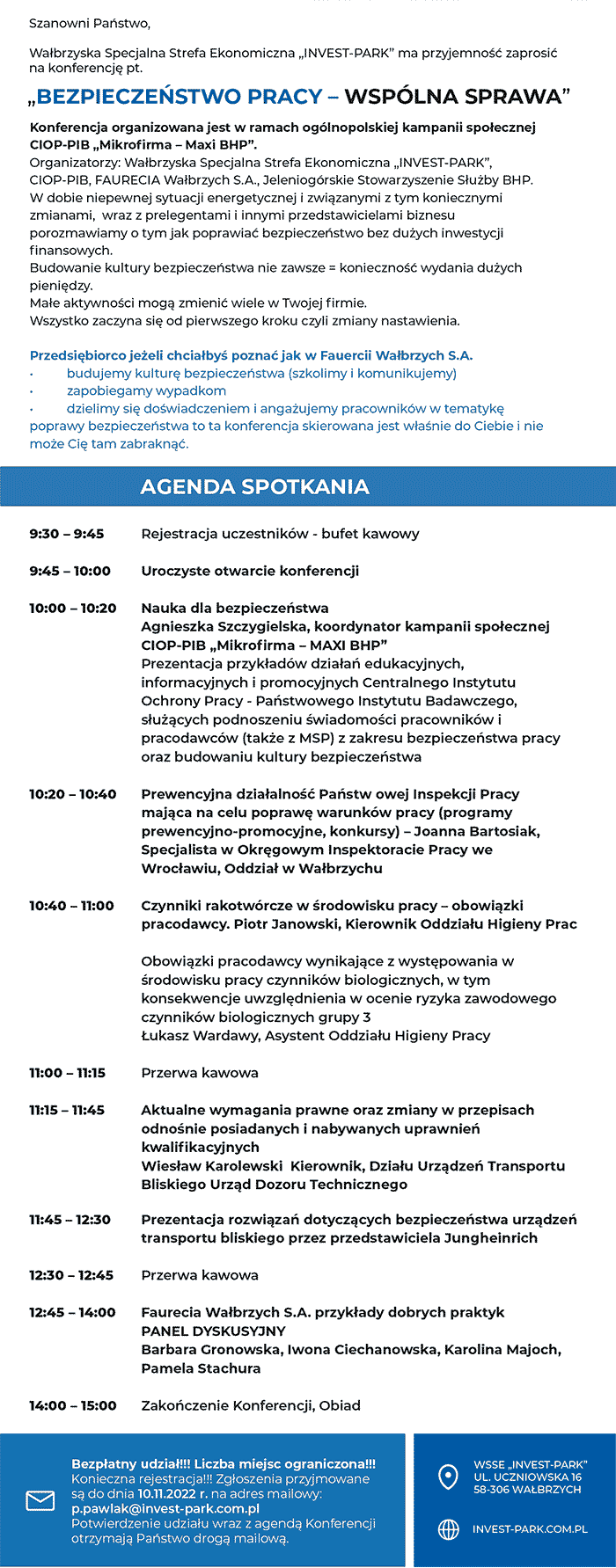 Konieczna rejestracja: p.pawlak@invest-park.com.pl