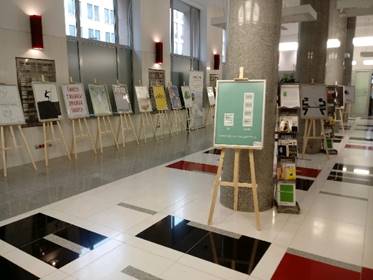 Fot. Wystawa plakatów bezpieczeństwa pracy w budynku Ministerstwa Rodziny, Pracy i Polityki Społecznej w Warszawie