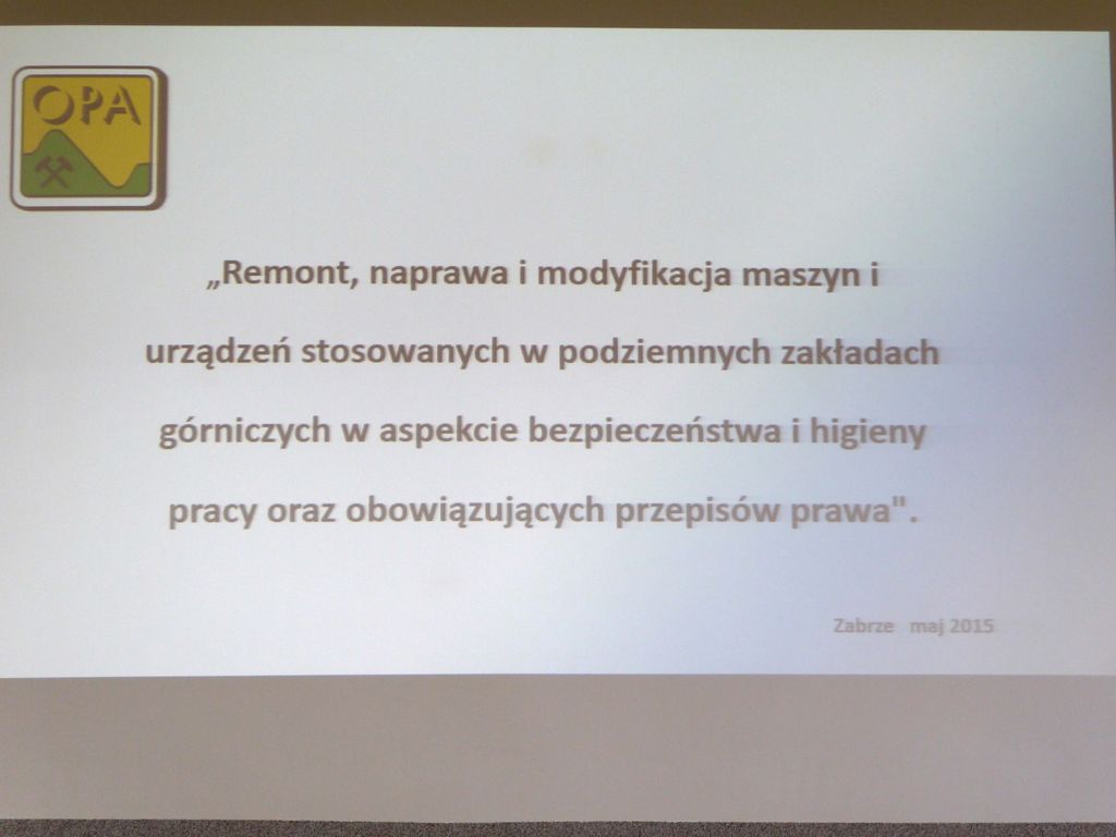 W dniu 14 maja 2015 r. w Zabrzu odbyło się spotkanie techniczne z zakresu promowania bezpieczeństwa i higieny pracy w przemyśle górniczym pt. "Remont, naprawa i modyfikacja maszyn i urządzeń stosowanych w podziemnych zakładach górniczych w aspekcie bezpieczeństwa i higieny pracy oraz obowiązujących przepisów prawa". Spotkanie zostało zorganizowane przez Ośrodek Pomiarów i Automatyki Przemysłu Węglowego S.A. z Zabrza.