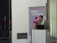 | 12.25 - 12.45 | Założenia i cele kampanii dotyczącej przeciwdziałaniu zagrożeniom mięśniowo-szkieletowym „Mniej dźwigaj” – mgr Wioletta Klimaszewska, CIOP-PIB |