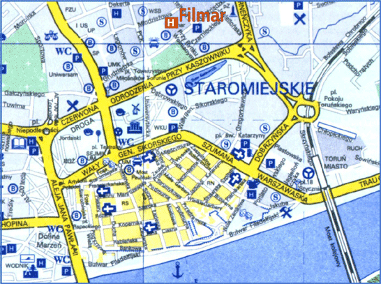 Hotel*** Filmar mieści się nieopodal zabytkowej części Torunia - miasta, które jest historycznym i kulturowym dziedzictwem Polski. Atrakcyjnym miejscem do zwiedzania jest toruńska starówka, której ozdobą są zabytkowe kamienice. Doskonałym miejscem na wieczorny spacer jest również Bulwar Filadelfijski, który prowadzi spacerowiczów między malowniczą Wisłą, a pięknie oświetlonymi ruinami XIII wiecznego Zamku Krzyżackiego.