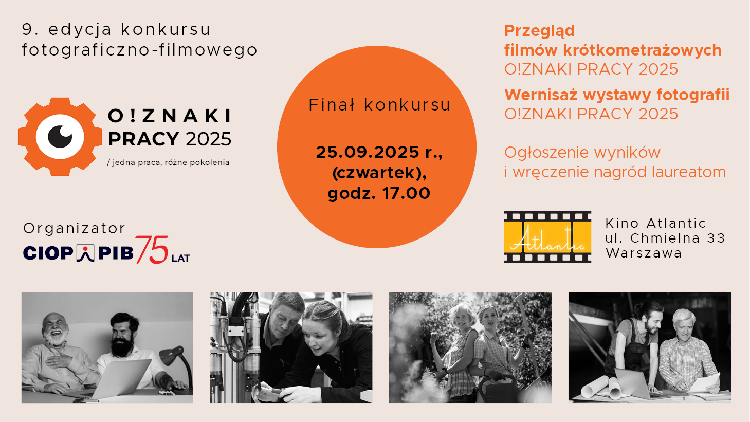 Z radością zapraszamy na uroczysty finał 9. edycji ogólnopolskiego konkursu fotograficzno-filmowego O!ZNAKI PRACY 2025, który odbędzie się:
