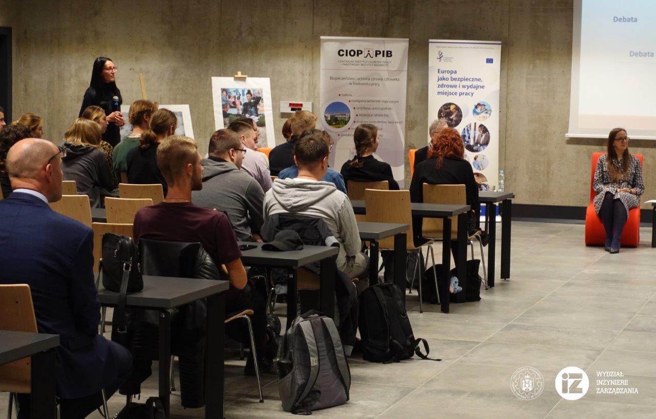 Pokaz filmów i debata pod hasłem "Praca, pasja, bezpieczeństwo" oraz towarzysząca im pokonkursowa wystawa fotografii O!ZNAKI PRACY - 16.10.2023 r., Wydział Inżynierii Zarządzania Politechniki Poznańskiej.