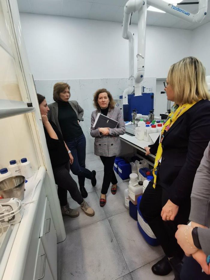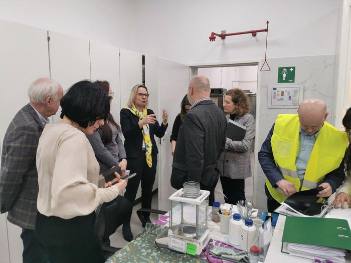 Spotkanie przedstawicieli CIOP-PIB i Wydziału Inżynierii Materiałowej Politechniki Warszawskiej z producentem rękawic - firmą FAREX S.A. oraz z przedstawicielami dyrekcji i Działu Technologii firmy Andropol S.A. z Białegostoku w sprawie wspólnej realizacji projektu dotyczącego opracowania hybrydowego materiału tekstylnego modyfikowanego grafenem, przeznaczonego do produkcji rękawic strażackich, 21 luty 2023 r., Białystok