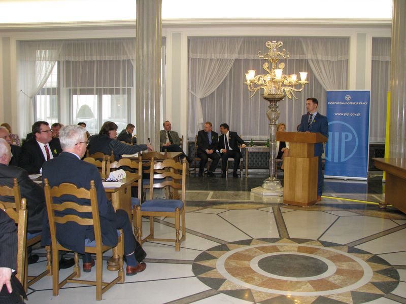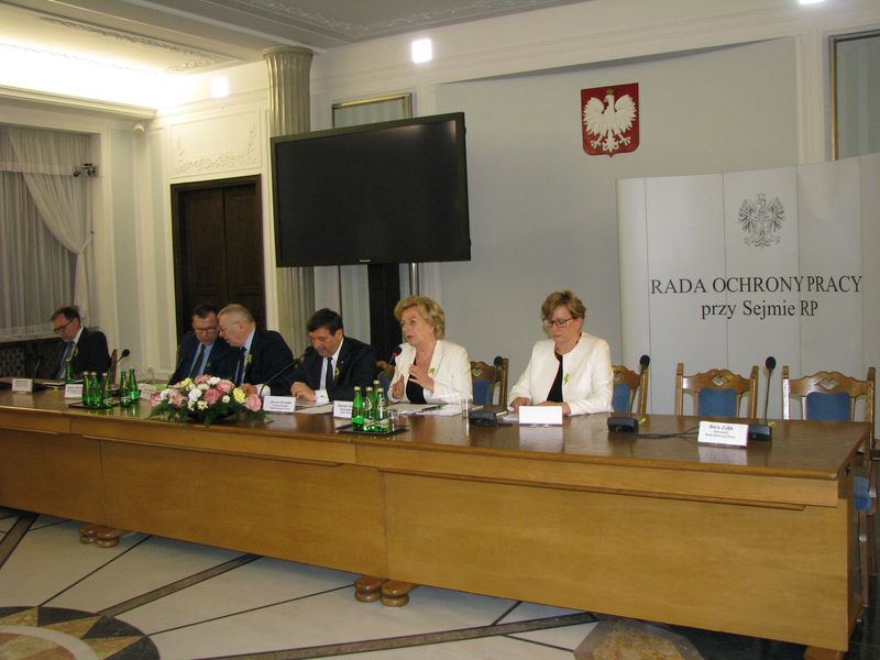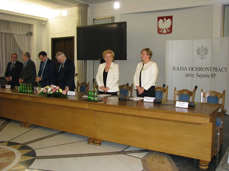 Uroczyste posiedzenie Rady Ochrony Pracy przy Sejmie RP i towarzysząca mu ogólnopolska konferencja pn. „Identyfikacja rodzajów działalności i grup pracowników o zwiększonym ryzyku wypadku przy pracy na podstawie analiz trendów długoterminowych”, Warszawa, Sala Kolumnowa Sejmu RP, 28 kwietnia 2017 r.